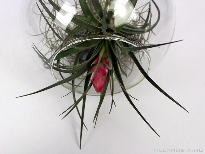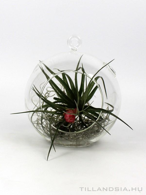 16,5cm átmérőjű felfüggeszthető üvegben lévő Tillandsia stricta. A dekoratív airplant kompozíció kellemes és dekoratív pontja lehet otthonunknak, nappalinknak, étkezőnknek, vagy akár fürdőszobánknak vagy konyhánknak. Kitűnő ajándék lehet bármilyen alkalomra.