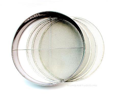 Három darab cserélhető - különböző sűrűségű fémhálós - betéttel rendelkező talajszita. Segítségével a bonsai ültető közegeket homogén frakcionáltságúvá szitálhatjuk, osztályozva egyben a bonsai talajokat.